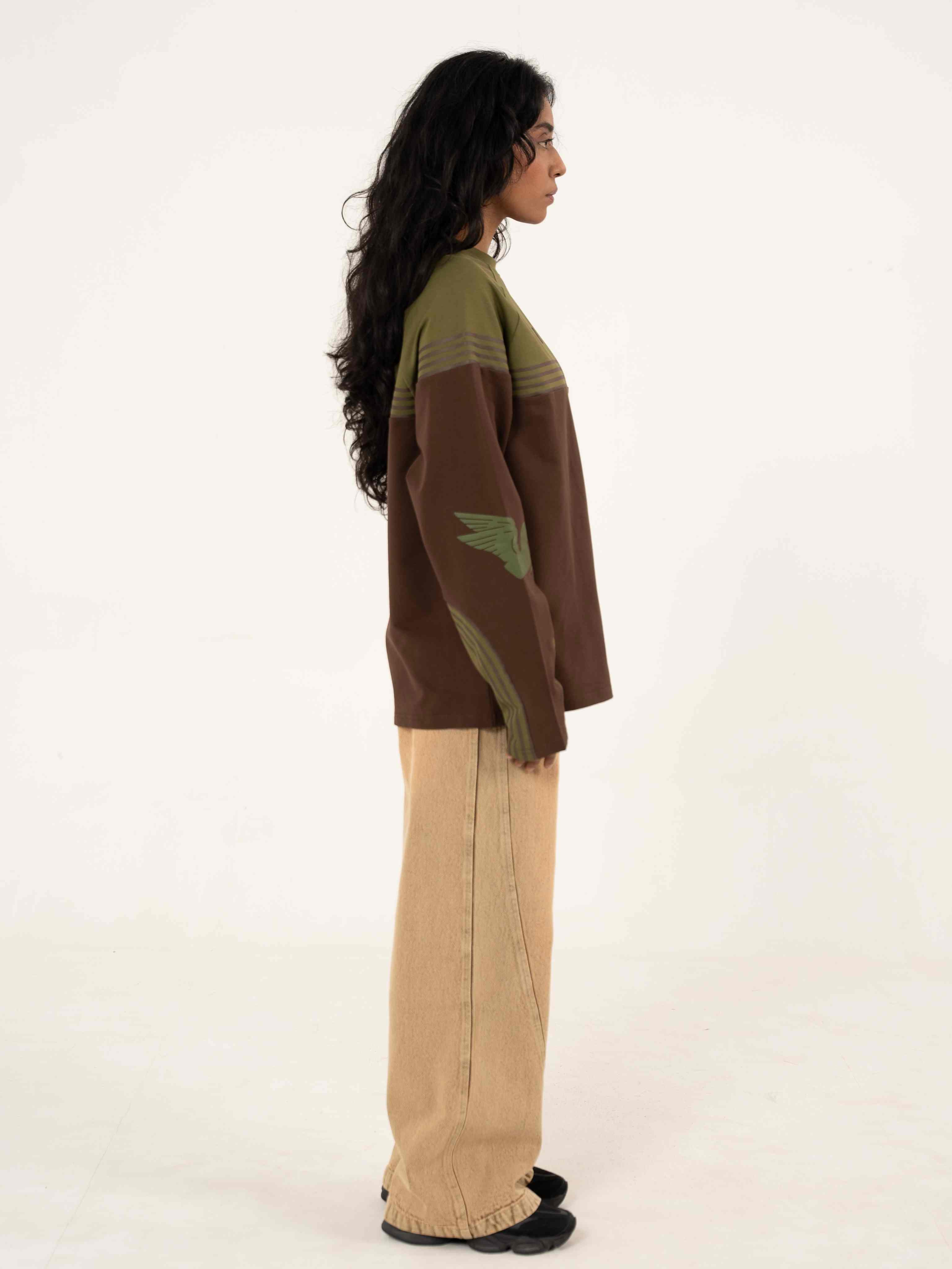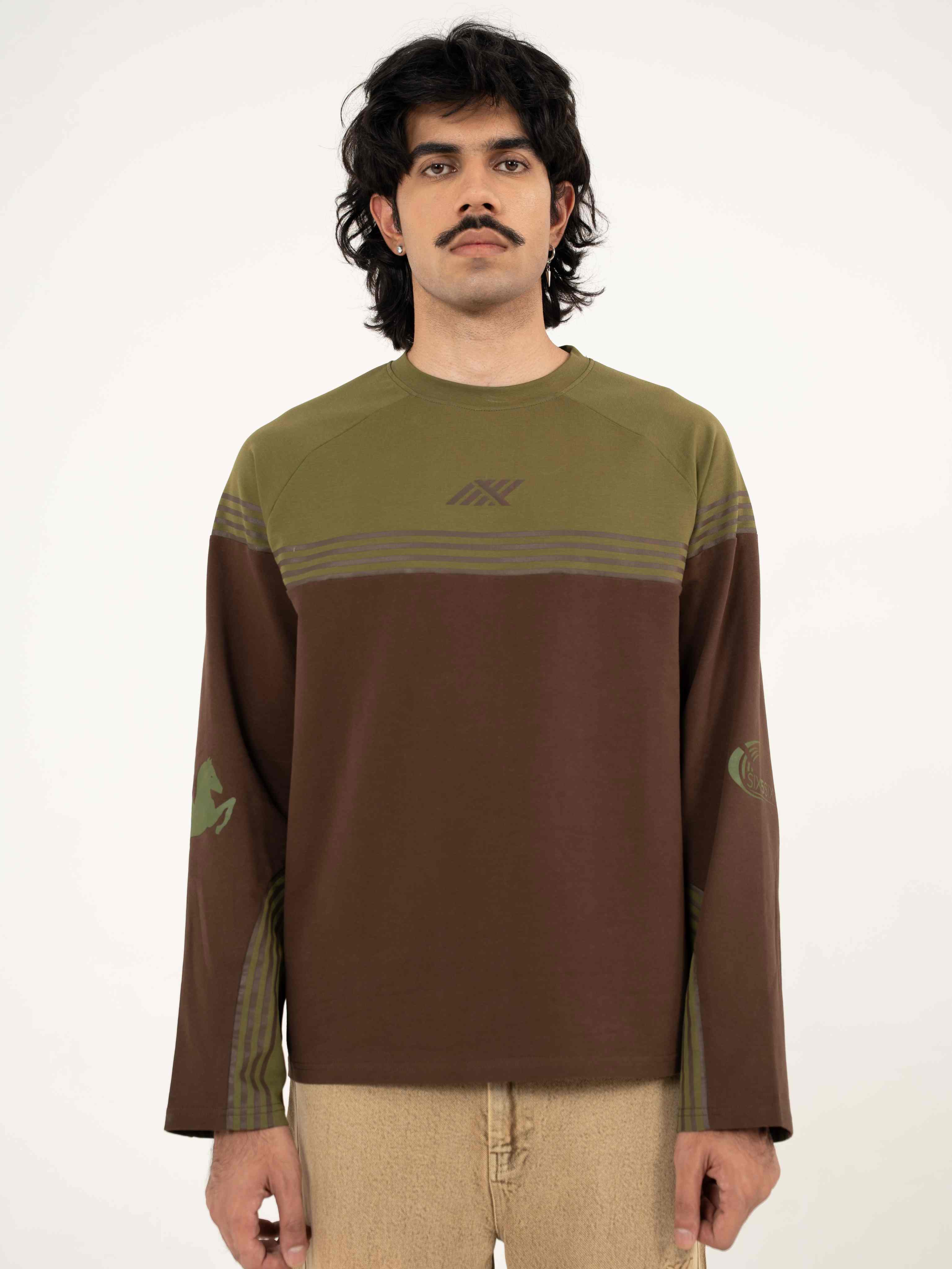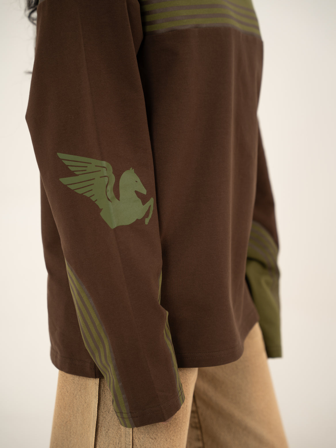 Seen from above, the linework mimics the bird’s-eye view of an elliptical race track, mapped around the body like a melting glacier, wrapping from the chest across the sleeves and circling back, creating a sense of motion that never really ends.The Glacier Tee captures this continuous rhythm, the path of play translated into fabric. Cut in 240 GSM melange cotton terry, it carries a laid-back structure with a relaxed athletic ease. The bright blue screen printed lines mirror the calm geometry of sport, while the Pegasus mark and curved SIX5SIX logo evoke lightness and forward motion.