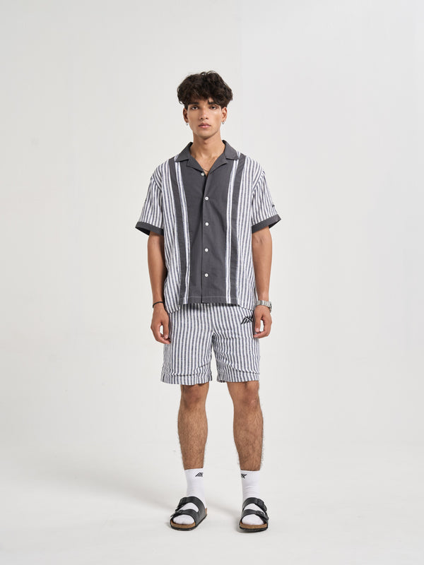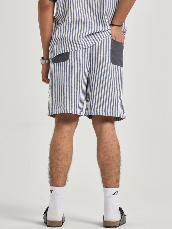 The Trackstar Linen Shorts combine a relaxed summer style with a race-ready aesthetic. Crafted from lightweight, striped linen, they feature contrasting side and back panels for a striking, structured appearance. Practical elements include a semi-elasticated waistband for comfort and dual back patch pockets. The design is finished with subtle, race-inspired SIX5SIX branding on the leg, making these shorts ideal as a standalone statement piece or paired with the Trackstar Linen Shirt.
